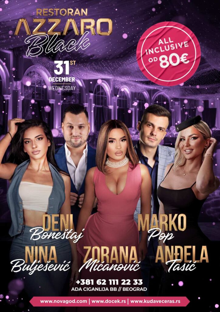 Doček Nove godine 2026. u Azzaro Black je savršena prilika da se okupe prijatelji i porodica, uživajući u domaćoj atmosferi i ukusnoj hrani. Ne zaboravite da rezervišete svoje mesto na vreme kako biste osigurali nezaboravnu noć ispunjenu smehom, muzikom i veseljem!